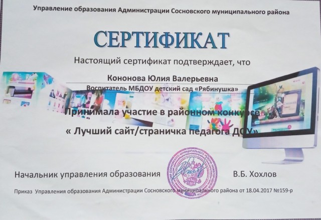 Сертификат участника районного конкурса