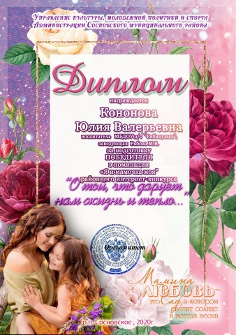 Диплом за подготовку победителя районного детского многожанрового онлайн-фестиваля
