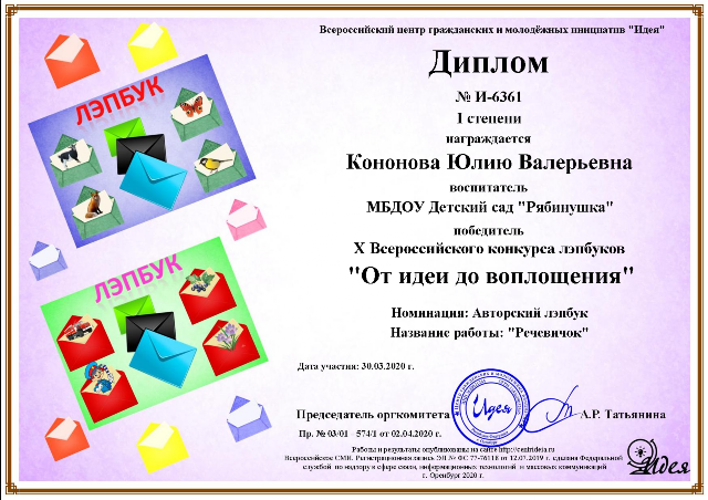Х Всероссийского конкурса лэпбуков "От идеи до воплощения"
