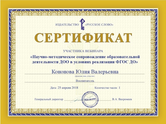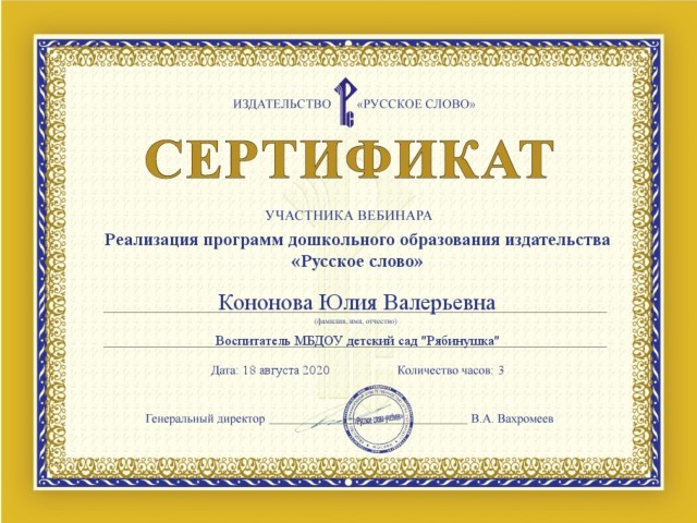 Сертификат участника вебинара