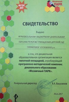 "Апробация программно-методического комплекса дошкольного образования "Мозаичный ПАРК"
