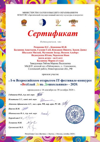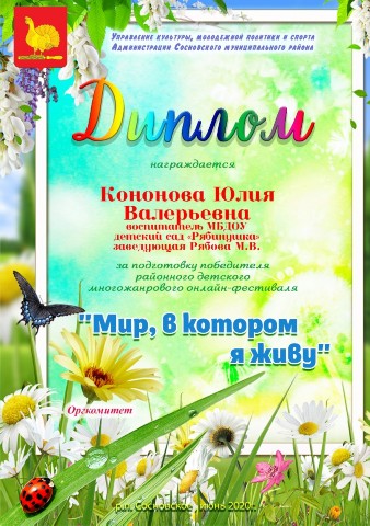 Диплом за подготовку победителя районного детского многожанрового онлайн-фестиваля